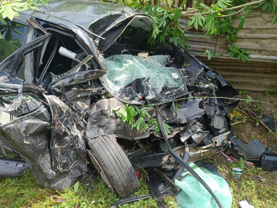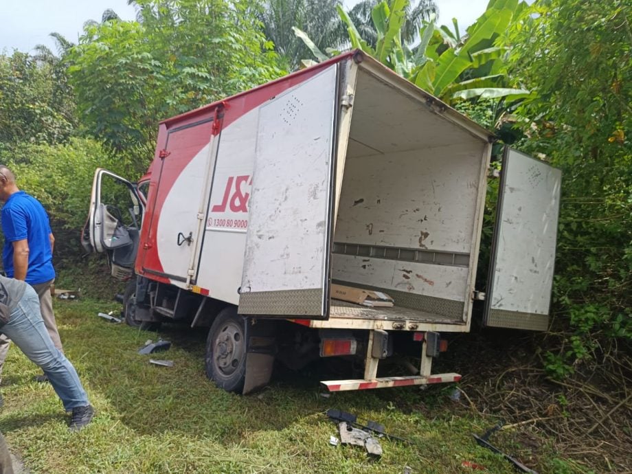 (姆阿占沙13日讯)轿车失控与快递公司罗里相撞,轿车男司机当场死亡,罗里司机受重伤。