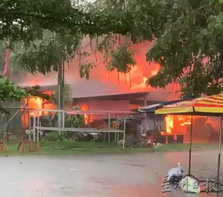 火灾是于今日下午5时左右发生,尽管下着大雨,但是火势仍一发不可收拾。