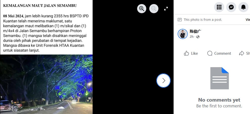 陈俊广在脸书张贴士满慕路曾经发生的交通意外案件。(陈俊广脸书截图)