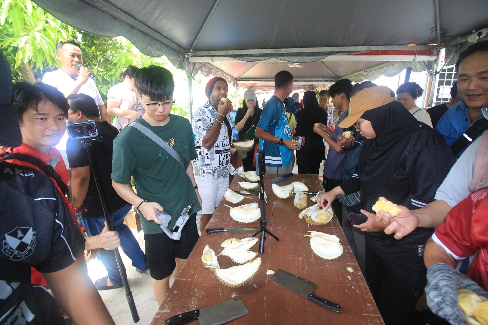 与此同时,吉隆坡武吉阿曼警察总部交警组一行20人今午也前往都赖旧路猫山王果园品尝榴梿。