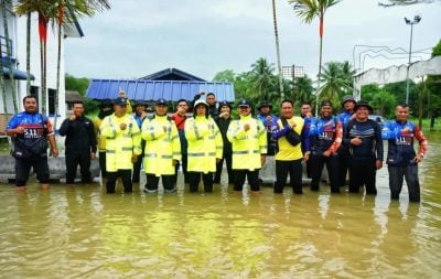 巴西马警区副主任聂阿米努丁昨日特前往兰斗班让灾区进行巡视,并前往兰斗班让警局视察警局范围内的水灾情况,给予值勤警员精神上的鼓励与支持。