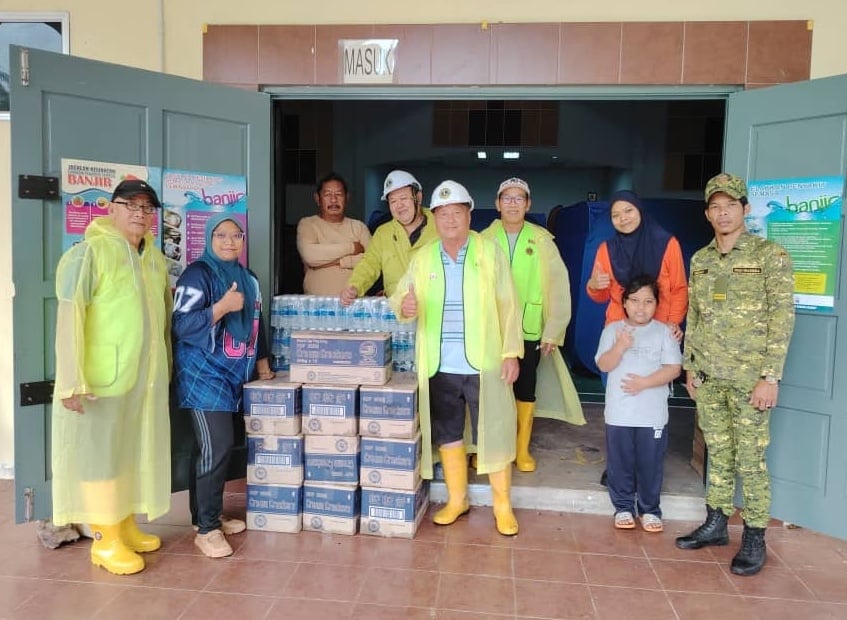 (劳勿29日讯)劳勿消防拯灾狮子会与新巴力守望相助群出资购买面包、饼干及矿泉水,送往水灾疏散中心,让无家可归的水灾灾民纾饥解渴。