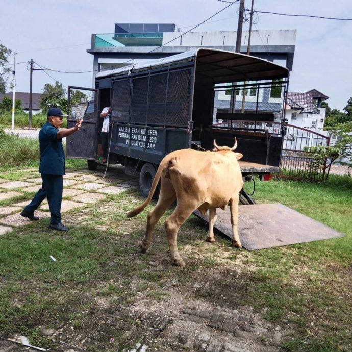 游荡牛只被执法人员赶上罗里。(脸书图)