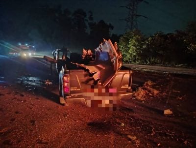 彭亨消拯局发出文告说,该局在午夜约4时15分接获投报,指格宾绕道位于垃圾场前方发生车祸。