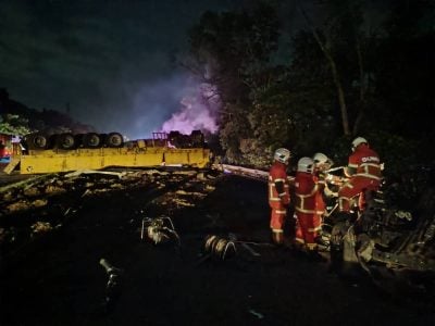 格宾绕道午夜发生车祸 罗里翻覆起火 四驱车司机死亡