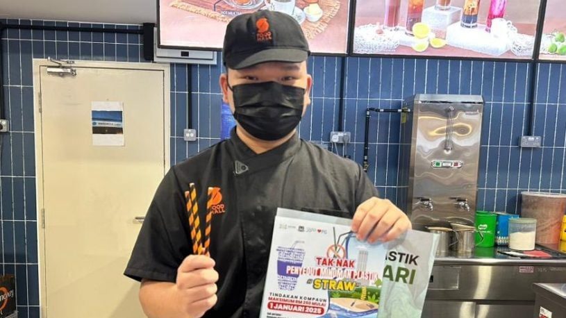 槟岛市政厅拉队到东北县两间购物商场,宣导拒绝使用塑料吸管和一次性塑料袋,并对许多业者已经使用纸吸管一事感到满意。