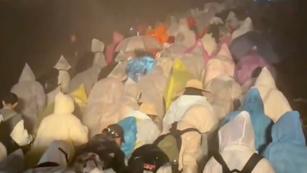 中国十一连假期间,游客人潮涌向泰山,突如其来的大雨与低温天气让他们陷入困境。周三(1日)夜间到昨早,泰山山区风雨交加,许多登山客无处可躲,只能挤身厕所或付费留宿饭请店、宾馆大厅,甚至选择半夜下山。景区提醒,民众出行前应留意天气,以免影响行程。