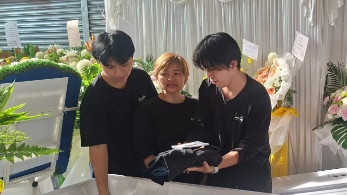 被誉为“马来西亚壁画推手”的槟城肯肯公共艺术创办人陈楚淮今日举殡,家人穿上他生前设计的工作服,并将写满无尽思念的信件放入灵柩,满怀哀伤送别一家之主走完最后一程