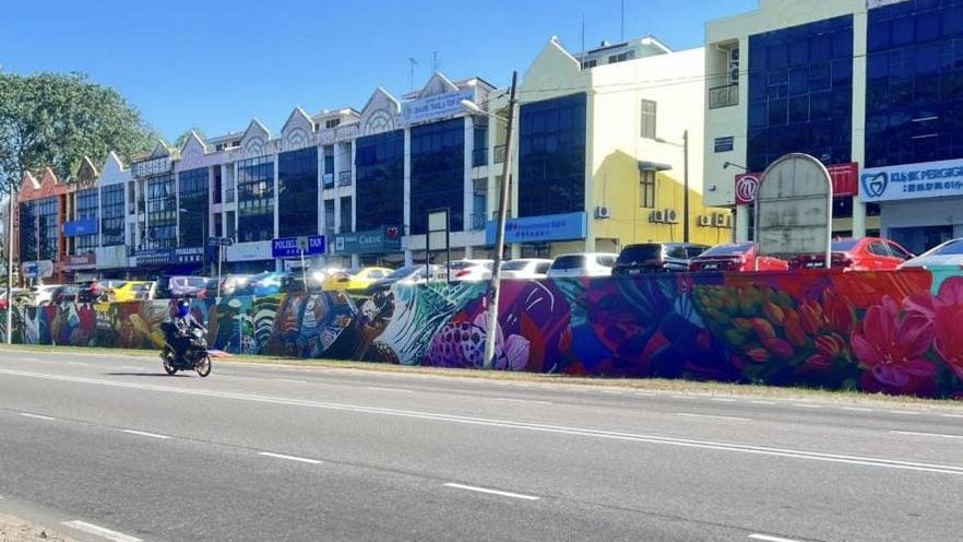 (古来1日讯)为迎接2026柔佛旅游年,古来再添以“古来之魅”(Persona Kulai)为主题、全长约175公尺的巨型壁画,展现古来从自然之美迈向现代智慧城市的独特风貌。 这幅壁画位于古来21哩庄园商业区矮墙上,以缤纷色彩描绘古来丰富的自然景观与多元文化魅力。 画作涵盖埔来山、蝴蝶、金鱼、鸟类、兰花与乌龟等元素,象征人与大自然和谐共生,凸显古来地区的生态丰富与多样性。 同时,壁画也融入海星休闲农场、古来大钟楼广场等知名地标,突显古来在生态与休闲旅游方面的巨大潜力。 值得一提的是,作品还巧妙结合现代科技元素,如数据中心与智慧城市的意象,展现在“柔佛前进”(Maju Johor)愿景下,古来在传统与创新之间的完美融合。 这幅“古来之魅”壁画不仅美化市容,更象征古来迈向现代化与永续发展的新篇章,成为迎接柔佛旅游年的视觉焦点与文化地标。