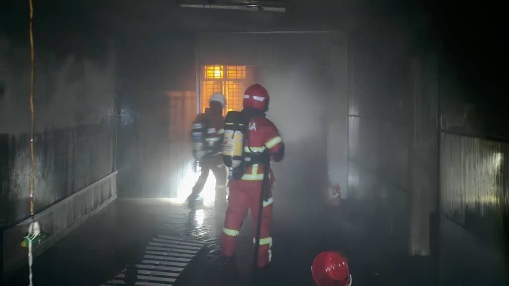 (笨珍22日讯)龟咯岛一间店屋二楼今日凌晨发生火灾,一名50岁男子双手被烧伤,随后送院治疗。 柔佛州消防与拯救局在文告中指出,当局于凌晨12时06分接获投报,指龟咯岛多层店铺区的一间店屋发生火灾,笨珍消防与拯救局马上出动11名消拯员员赶往现场。 根据文告,消拯队抵达现场时,火势已在二楼的房间内蔓延,并已烧毁约50%的房间结构。 消拯队队使用一条200呎水带、两支喷射水枪,以及消防车水泵,从附近消防栓取水,展开灌救行动。 火势于凌晨12时59分受控,并于凌晨2时被彻底扑灭。 据悉,现场一名男子在火灾中,身体被烧伤约20%,双手出现二度灼伤,随后由救援队送往医院治疗。 消拯局仍在调查起火原因及损失。