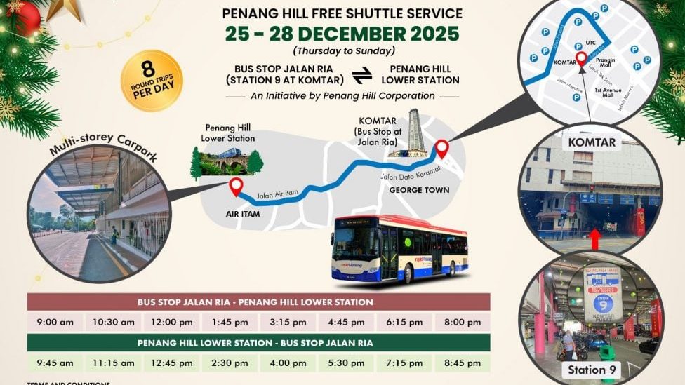 升旗山机构在槟州政府的支持下,与槟城快捷通有限公司合作,将于年终学校假期期间继续提供升旗山免费接驳巴士服务