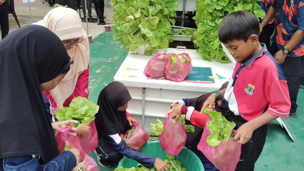 鱼菜共生计划有成 敦帕尔国小师生喜迎丰收