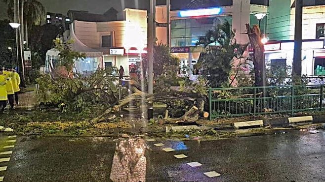 狂风暴雨袭乌鲁音 峇冬加里树倒拦路