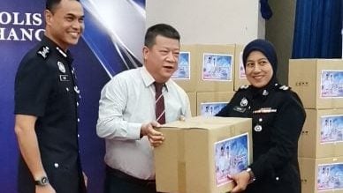 首相政治秘书拿督阿末法汉捐赠1000个每个价值100令吉的“昌明关怀食物盒”给彭亨州警方,以转交和协助有需要的群体。