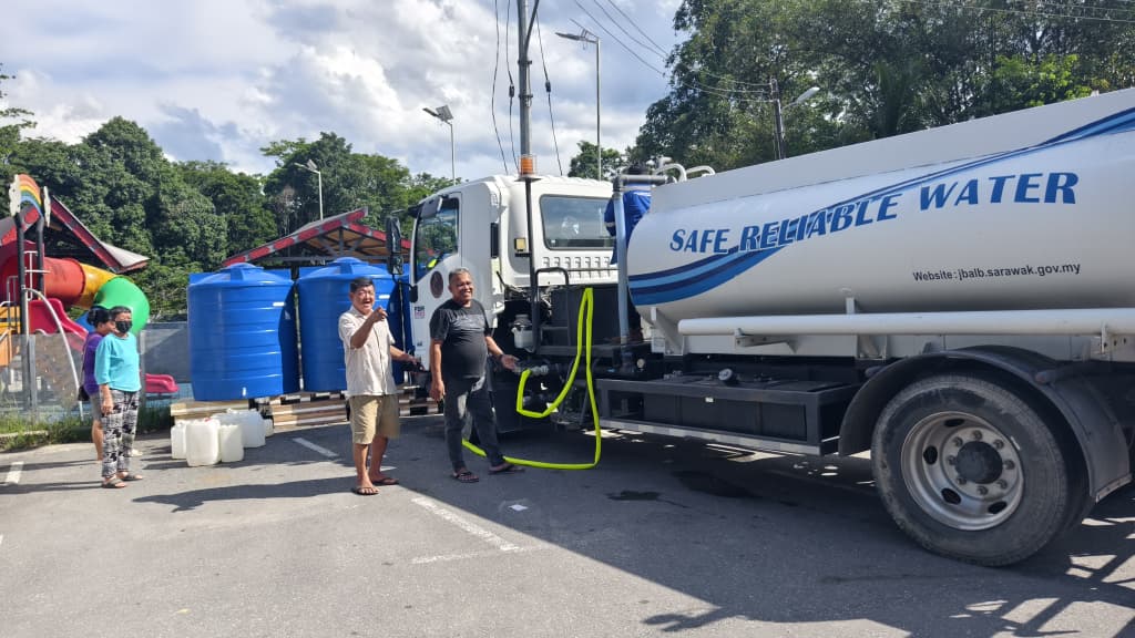 (如楼29日讯)由于滤水站因水源受污染而停止运作清理,如楼地区自昨午起全面断水,许多居民纷纷购买矿泉水应急。市区商店尤其是茶餐室今日暂停营业,影响广泛。 如楼社区领袖甲必丹严仕斌指出,乡区水供局于昨日中午通过WhatsApp通知如楼县各社区领袖有关停水措施。 他说,截至今日中午,水供仍未恢复,预计需两至三天才能恢复正常。 2国中优先获送水 严仕斌指出,近期天气炎热,食水使用量大,断水超过一天后,不少居民已出现缺水情况。水供局今早接获居民求助后,于早上10时30分派出水车到如楼,为两所国中送水,以确保宿舍学生的日常所需。 他说,相信水车将陆续前往各区分派食水应急。 除了学校,政府部门、诊所、商店及各区居民皆受影响。居民深切期盼当局尽快完成维修工作,让供水早日恢复正常。 如楼地区断水,泗里街省乡区水供局派水车为民众解燃眉之急。 sb251029g12.JPG 泗里街省乡区水供局官员协助居民将水输入储水桶。 sb251029g13.JPG 居民盛水以备不时之需。