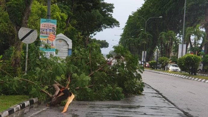狂风暴雨袭乌鲁音 峇冬加里树倒拦路