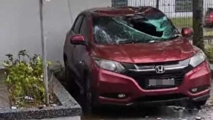 (依斯干达公主城10日讯)依斯干达公主城位于美迪尼的一幢高级公寓,昨午在狂风暴雨中,疑发生顶楼外墙壁沿石灰脱落坠下事故,导致露天停车场的车辆遭坠落的石灰块击破车镜或车顶凹陷,车身严重损坏。 据了解,事发的公寓楼高35层,石灰块从数十层高空坠下,所幸事件未传出伤亡。 遭强风刮落的石灰块也散落在马路上,现场一片狼藉,居民事后纷纷观察车辆损毁情况,清洁工人则清理石灰块。 另一方面,依斯干达公主城警区主任古马拉山受询时表示,警方目前接获4名涉事车主的报案,最后接获报案的时间是在昨晚10时左右。 他说,有关的车主已向保险公司投报,希望获得理赔。 “还有一位居民报案,称其房屋窗户在事故发生时被强风吹破。”