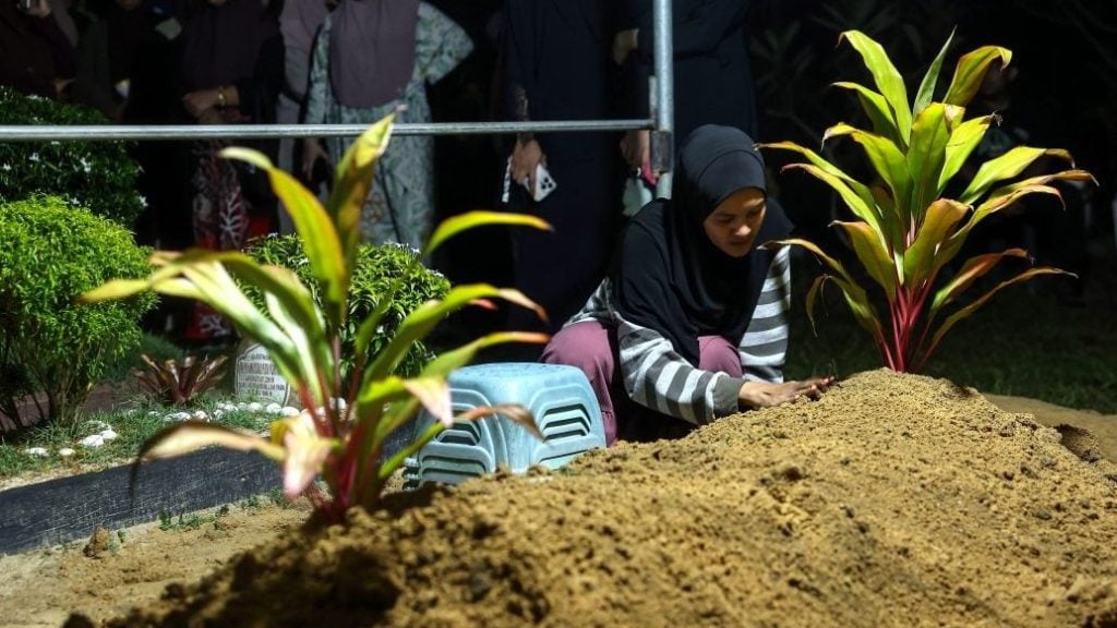 被叔叔以铁锤殴打致重伤而离世的7岁男童莫哈末阿玛尔,昨晚在万捷县日拉瓦的甘榜慕佐坟场下葬。