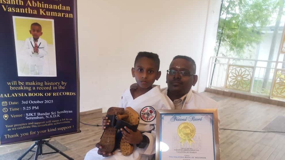 本地一名二年级的印裔学生,因穿钉鞋表演空手道动作,被列入马来西亚纪录大全(MBOR)!