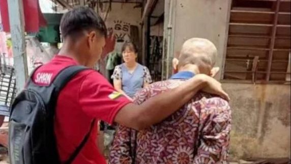 丹州伊党拥护者大会堂今日顺利将患病的长者沈来福,安顿到三娘善心老人院。
