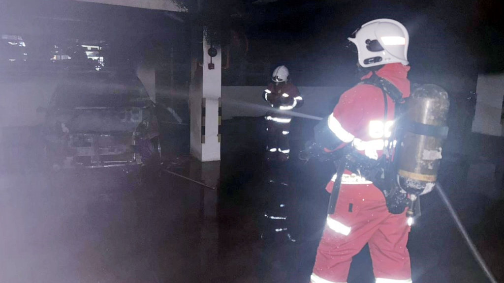停车场3轿车失火 2辆烧成废铁